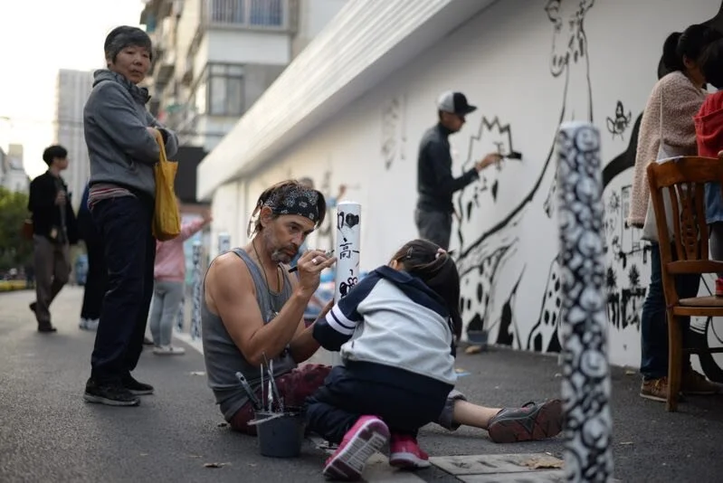 EN MASSE is a multi-artist collaborative drawing project that creates boldly black-and-white works of public art; underlining the power of shared creativity, and the building of strong communities through effective communication.